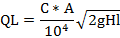 donde: C – es el coeficiente de derrame, A – es la superficie del juego, g – es la aceleración de la gravedad y HI – es la presión a través de los aros.