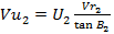 donde: U2 es la velocidad periférica, Vr2 - es la velocidad radial de salida y tan β2- es la tangente de β2.